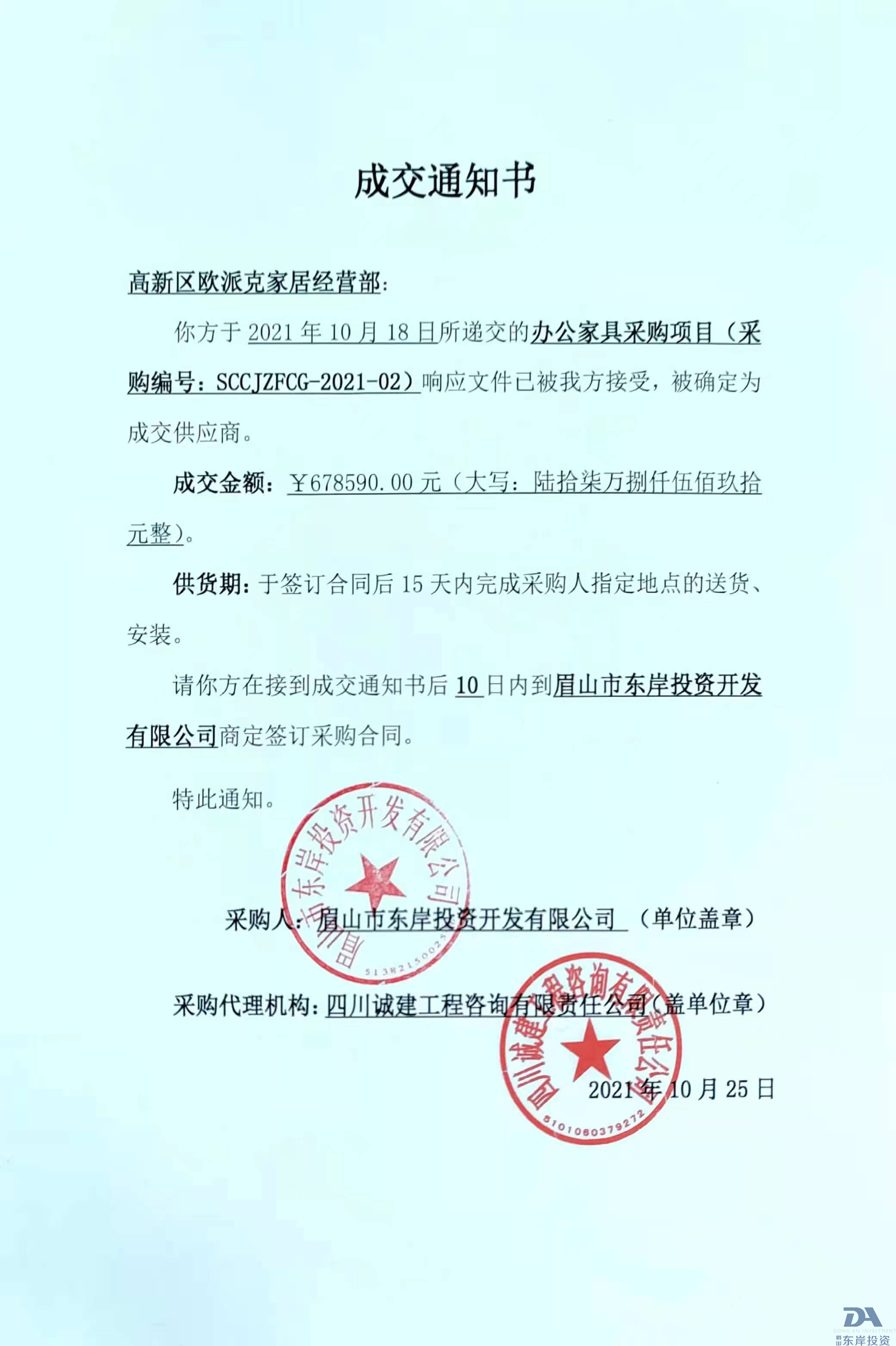 眉山市東岸投資開發(fā)有限公司辦公家具采購項目結(jié)果公示_眉山市東岸投資開發(fā)有限公司